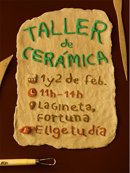 Talleres de cerámica publicitados con carteles elaborados artesanalmente.